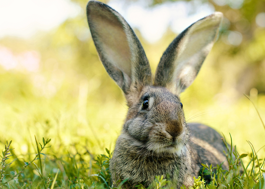 Rabbit on the garden grass